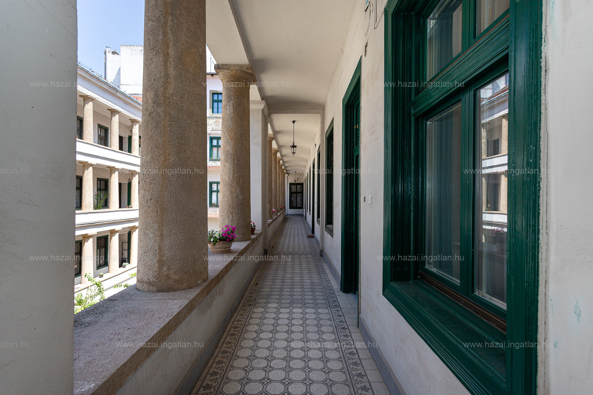 Az ingatlan egy impozáns, Hild József által tervezett, az 1800-as években épült, patinás társasházban található, amely több felújításon átesett, így megőrizte eredeti szépségét. A háznak két bejárata van – Nádor utca 5. és Mérleg utca 10.felől –, a lift a Mérleg utcai bejáratnál található.