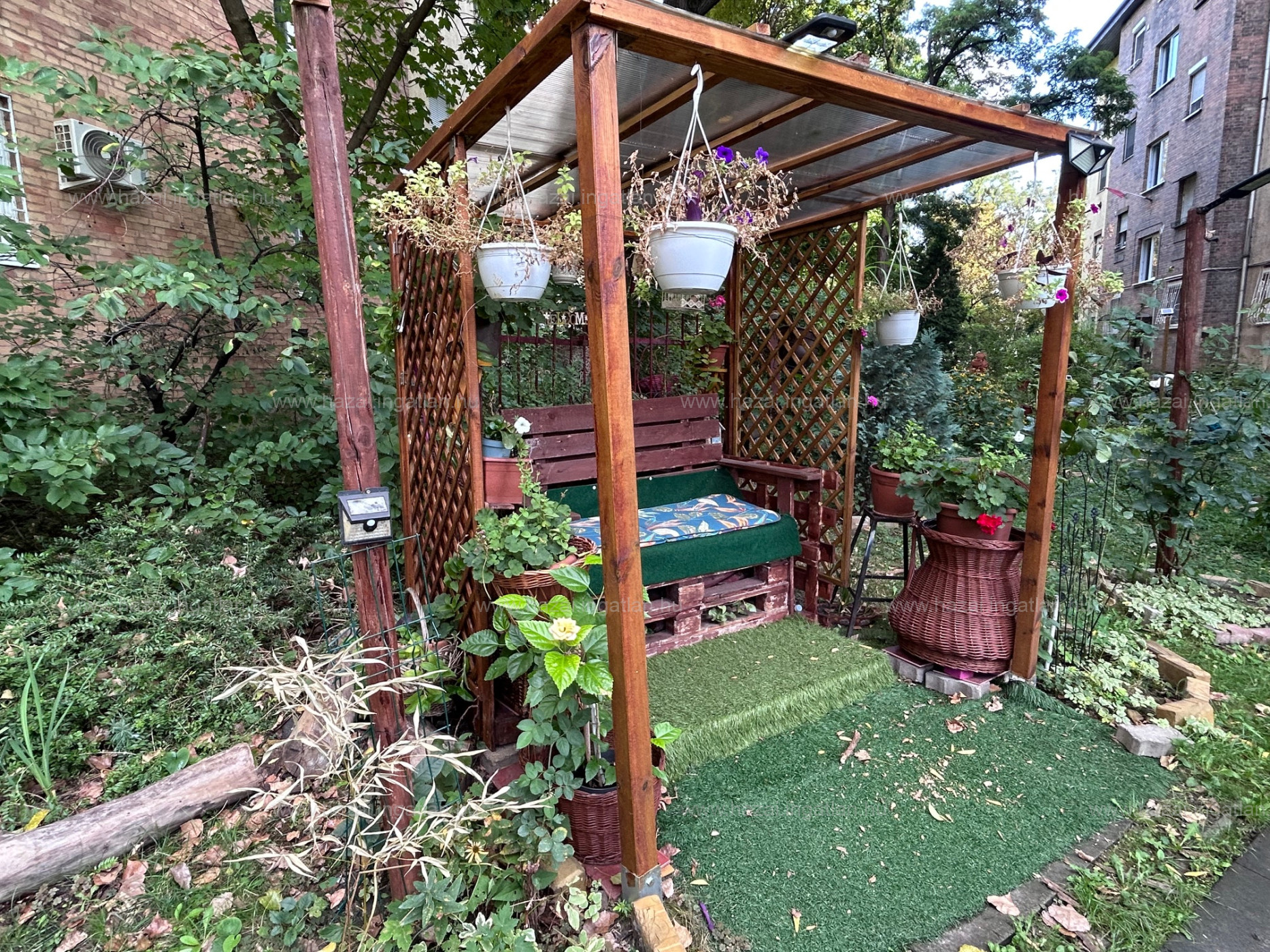 A ház előtt takaros, hangulatos kert található, ami igazi ritkaság, és különleges otthonosságot ad a mindennapokhoz.