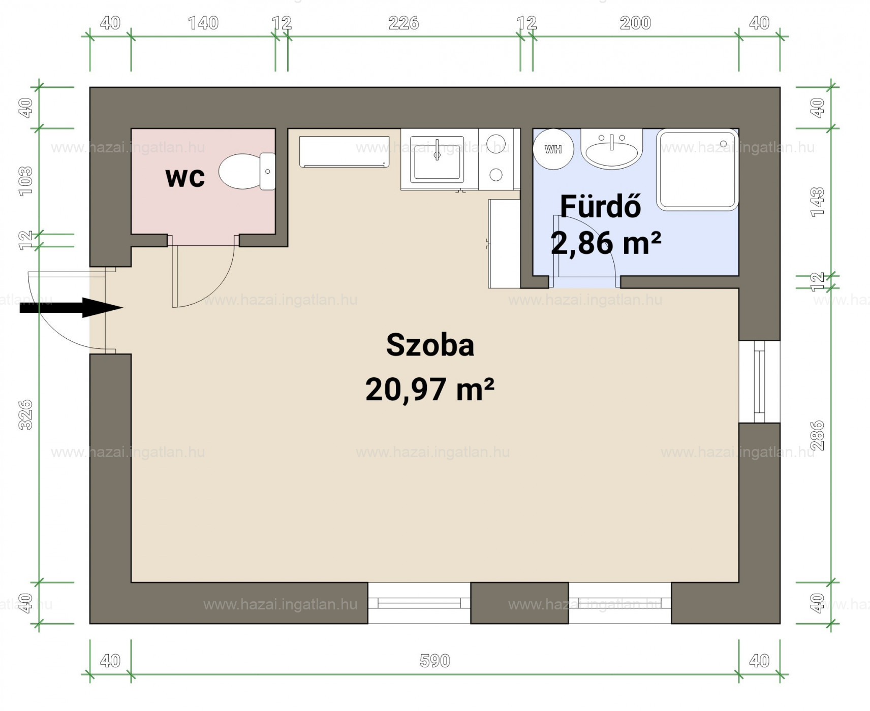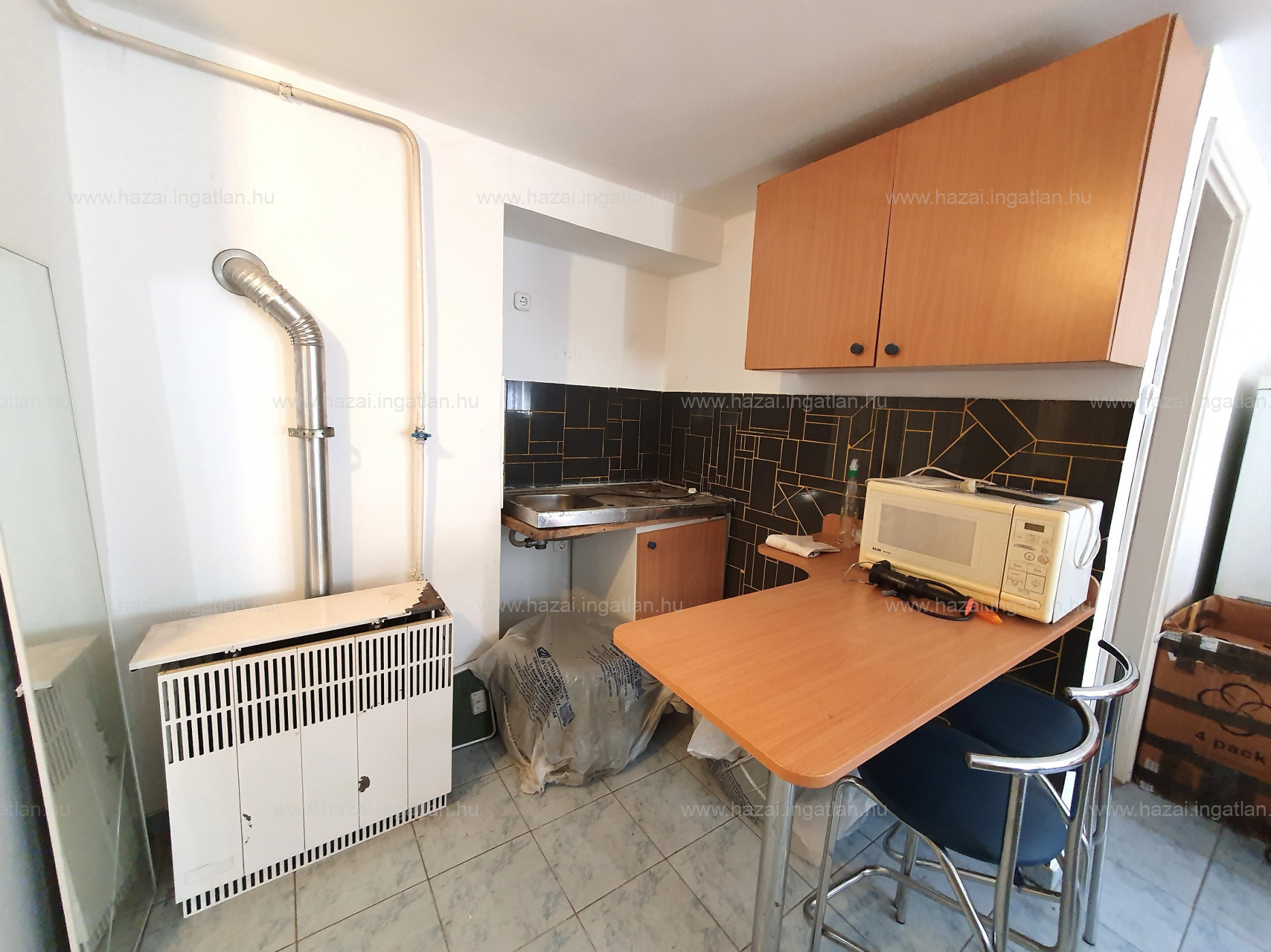 A lakás világos, az ablakai a csendes belső udvar felé néznek. A fűtés gáz-konvektorral, a melegvíz ellátás villanybojlerről történik. A fürdő és wc külön helyiség, mindenhol hidegburkolat van. A lakás festést és konyhabútorcserét mindenképp igényel, Az ingatlan ára: 17,9 MFt.
