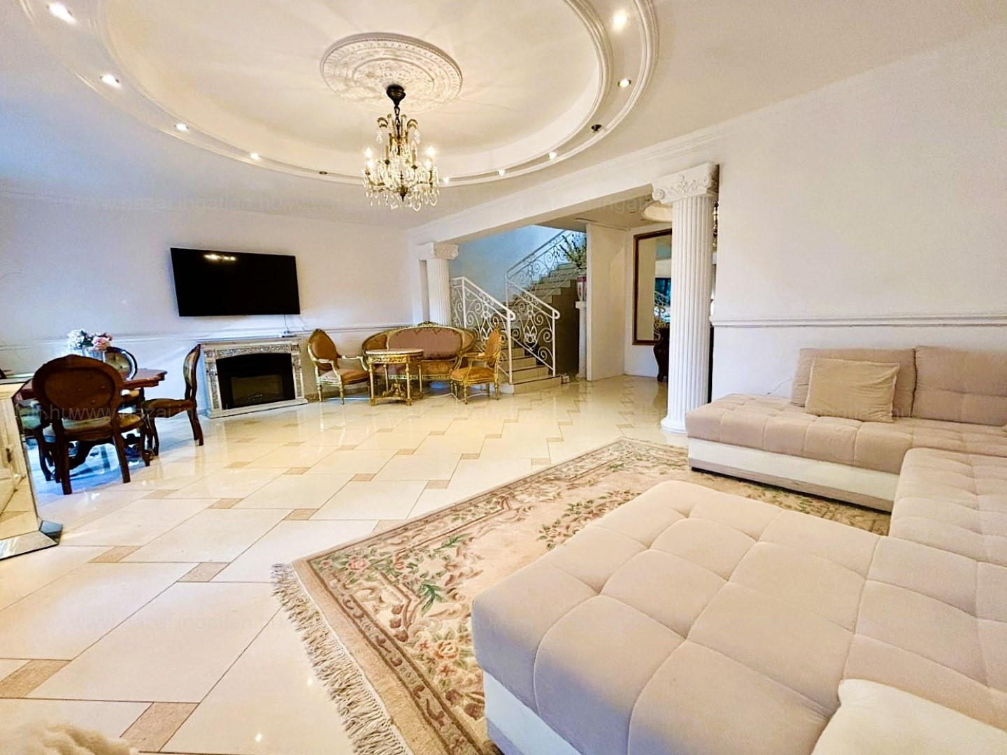 楼上: 楼上设有美式厨房与客厅,继续前行可到达两间卧室和楼上的浴室。