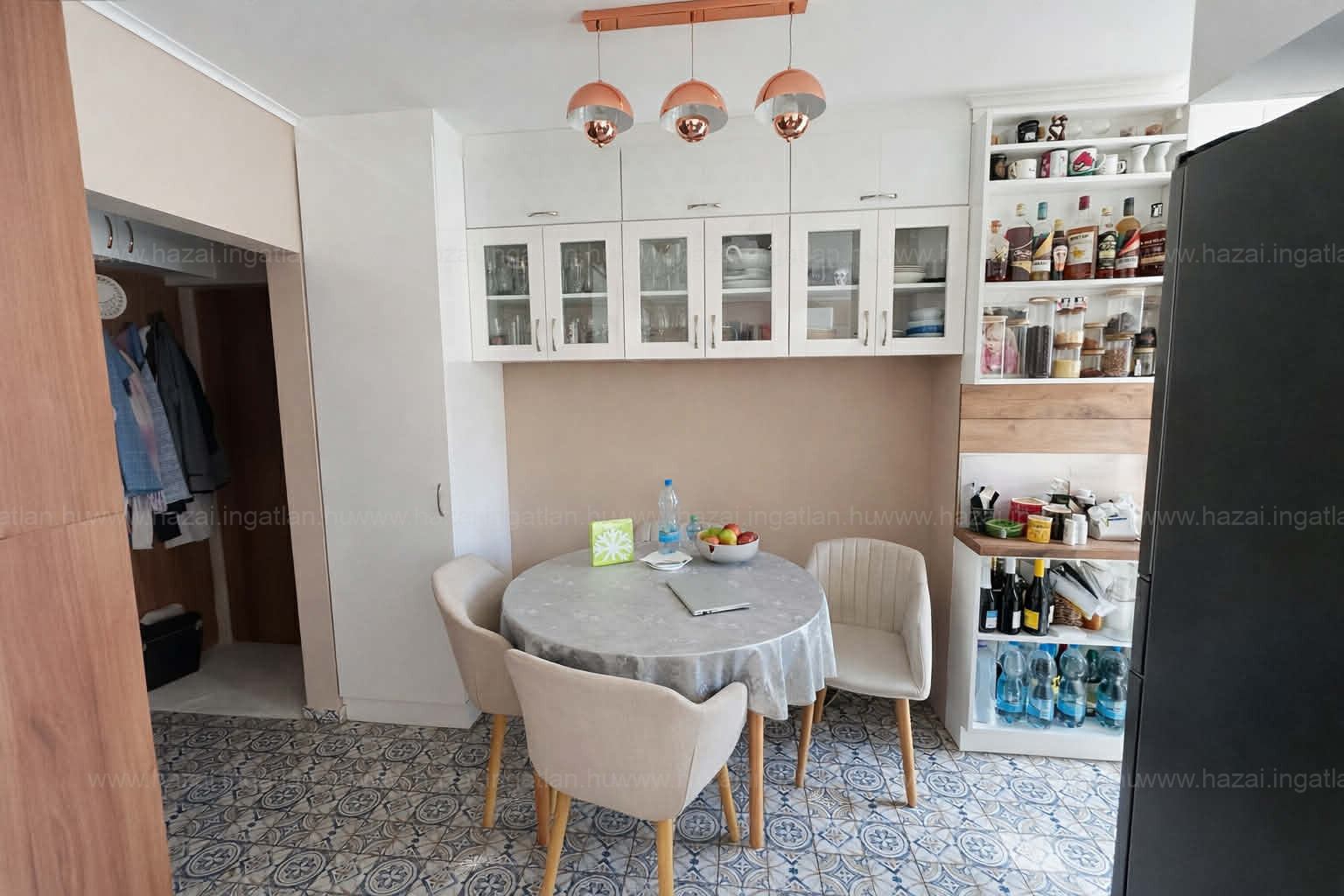 A konyhában gyönyörű Capri stílusú padlólapok kerültek lerakásra a Zala Kerámia kínálatából, melyek elegáns és különleges hangulatot adnak a térnek. A tulajdonos ráadásul pótló burkolatot is tud biztosítani, ami egy esetleges későbbi átalakítás vagy javítás esetén nagy előny lehet.